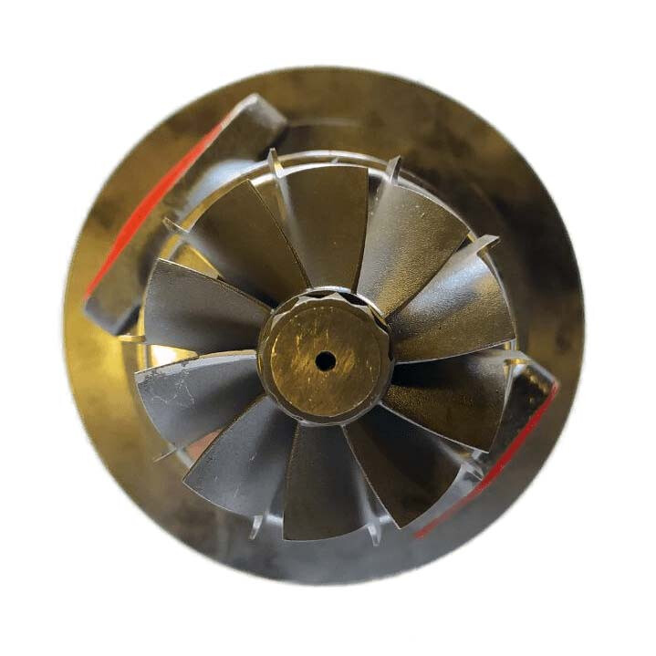Картридж складається з центрального корпусу турбіни, внутрішнього набору, ротора турбіни і компресорного колеса турбіни (крильчатки). Даний картридж успішно пройшов тестування на балансувальному стенді Turbo Technics і повністю готовий до установки і подальшої експлуатації.